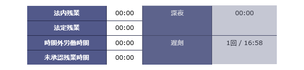 承認を得ている場合、予定終業時刻までの残業は法定残業・法内残業に計算され、予定終業時刻を超える残業は、未承認残業時間として計算されます。